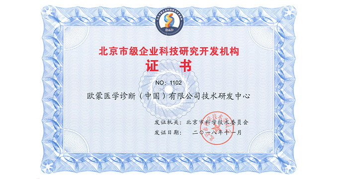 研發中心被北京市科學技術委員會認定為“北京市級企業科技研究開發機構”