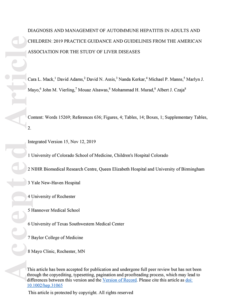 2019AASLD實踐指南:成人和兒童自身免疫性肝炎的診斷和治療