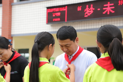 少先隊員代表為領導嘉賓敬獻紅領巾