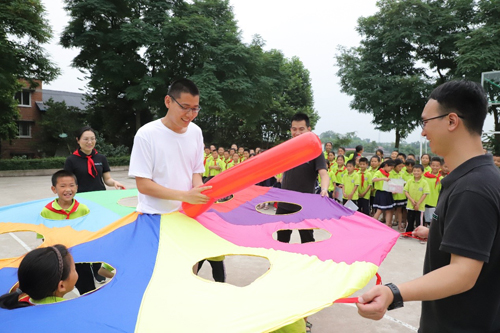 志愿者課堂結束后,一場別出心裁的趣味運動會點燃了在場所有人的熱情,志愿者與孩子們融為一體,努力為自己團隊爭取勝利,現場高潮不斷,笑聲不絕于耳,吶喊聲、喝彩聲回蕩在山谷、田野間。