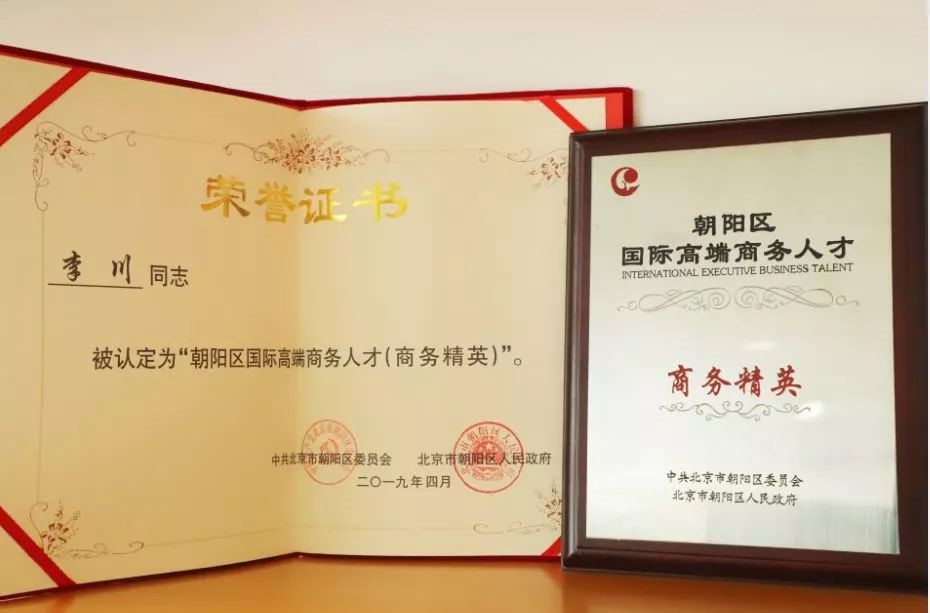 “朝陽區國際高端商務精英”榮譽稱號的授予體現了北京市朝陽區委、區政府高度認可李川總裁為朝陽區域的發展做出貢獻,也是對他在公司管理能力、商務專業素養、企業家社會責任等全方面成績的肯定!這份榮譽既是一份沉甸甸的責任,又是繼續向前的動力,在新的起點上,追求卓越,與商務精英攜手,繼續為朝陽區的發展再接再厲。