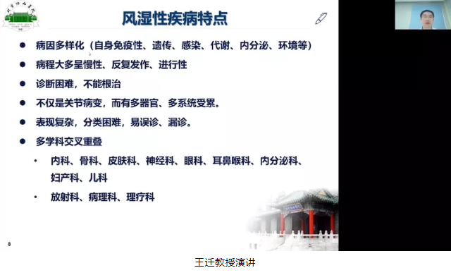 北京協和醫院風濕免疫科王遷教授從臨床癥狀著眼,給我們帶來《風濕病-隱藏在各科的炸彈》。風濕病臨床表現多樣,涉及皮膚、口腔、眼、耳、鼻、呼吸系統、心血管系統、神經系統、血液系統、內分泌系統、消化系統等,表現復雜,分類困難,易誤診、漏診。及時的進行自身抗體譜檢測,有助于發現早期和不典型患者,避免誤診、漏診。