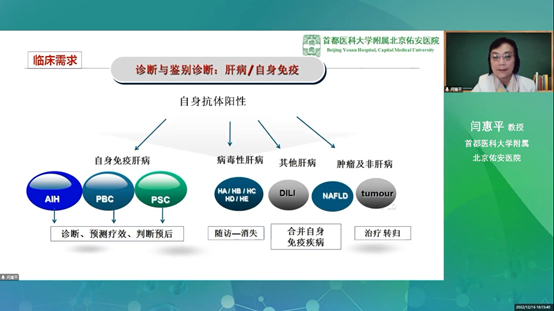 學術報告后,閆惠平教授主持討論環節,并與各位專家圍繞自身免疫性肝病實驗診斷的進展相關內容進行了深入的交流與分享。閆教授結合本次會議的主題,以及線上觀眾的提問,提出了兩個問題: