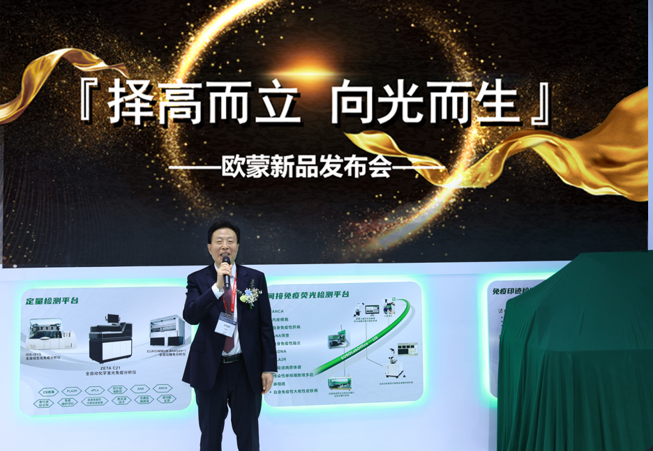 同期,在全國風(fēng)濕年會現(xiàn)場,北京協(xié)和醫(yī)院曾小峰教授、北京大學(xué)第一醫(yī)院張卓莉教授、西安交通大學(xué)第一附屬醫(yī)院何嵐教授以及歐蒙醫(yī)學(xué)診斷總經(jīng)理楊樂斌先生出席了新品發(fā)布會活動。歐蒙化學(xué)發(fā)光免疫檢測平臺的推出,也預(yù)示著即將譜寫自身免疫性疾病診斷的新篇章。