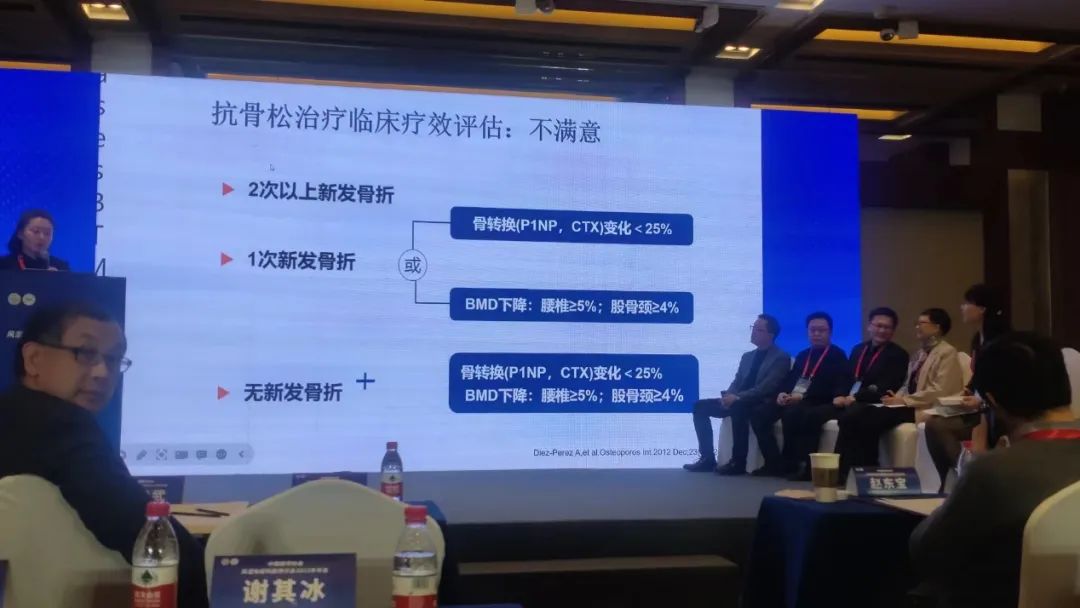 謝其冰教授還強調了在疾病診斷和治療過程中,至少選擇一個骨形成標志物和一個骨吸收標志物;疾病隨訪、療效監測時應檢測同樣的BTMs;目前國際上多推薦P1NP為首選骨形成標志物,β-CTX為首選骨吸收標志物。冬梅教授指出β-CTX治療中期望值為最少降低>35%,P1NP至少升高>40%;如果二者在治療監測中變化程度<25%,則認為抗骨質疏松療效不滿意。