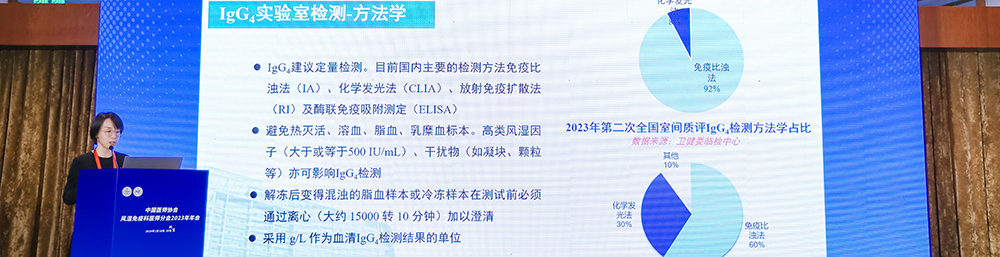 在《免疫球蛋白G4檢測的臨床應用專家共識》主題報告中,李教授指出IgG4存在于多種疾病中,具有免疫調節作用,在自身免疫性疾病中,抗原特異性IgG4通過阻斷機制直接致病,例如RA中,IgG4本身可能成為靶向IgG4鉸鏈區的自身抗體的靶點。