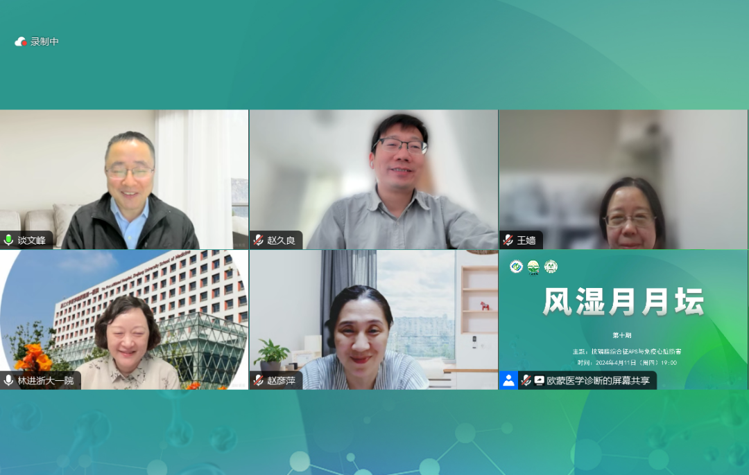 2024年4月11日,由江蘇省研究型醫(yī)院學(xué)會(huì)和一味書(shū)院主辦的《風(fēng)濕月月壇(第10期)—抗磷脂綜合征APS與免疫心臟損害》于線上成功舉行。本次論壇由南京醫(yī)科大學(xué)第一附屬醫(yī)院談文峰教授擔(dān)任大會(huì)主席,北京協(xié)和醫(yī)院趙久良教授、南京醫(yī)科大學(xué)第一附屬醫(yī)院王嬙教授作為講課嘉賓,浙江大學(xué)醫(yī)學(xué)院附屬第一醫(yī)院林進(jìn)教授、哈爾濱醫(yī)科大學(xué)附屬第一醫(yī)院趙彥萍教授作為本次大會(huì)的討論嘉賓。