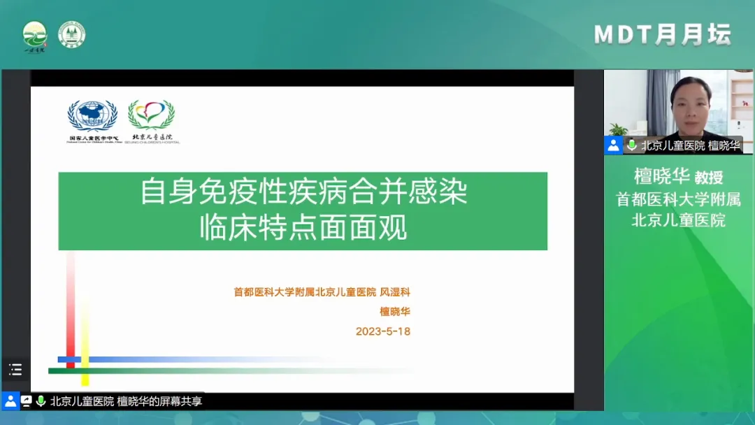 檀曉華教授主要從三個(gè)方面:發(fā)病機(jī)制,臨床特點(diǎn),及兩者之間相互關(guān)系,從臨床角度出發(fā)對自身免疫性疾病合并感染臨床特點(diǎn)進(jìn)行分析。檀教授還根據(jù)寶貴的臨床工作經(jīng)驗(yàn)出發(fā),從自身免疫和自身炎癥反應(yīng)的大方向講解風(fēng)濕免疫性疾病,及時(shí)診斷及有效挽救患兒生命。
