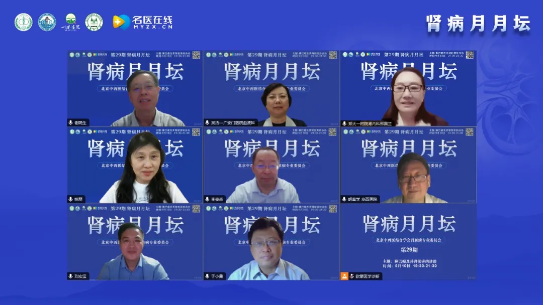 謝教授簡單介紹了“腎病月月壇”的歷史,“腎病月月壇”是在2022年5月新冠疫情防控期間開始的線上學術交流活動,每個月第3周的周二晚上19:30-21:30開展,其形式是講座與討論相結合;每期一個主題,已完成的主題包含膜性腎病及其并發癥、風濕性疾病腎損害、遺傳性腎病的中西醫結合診治等。