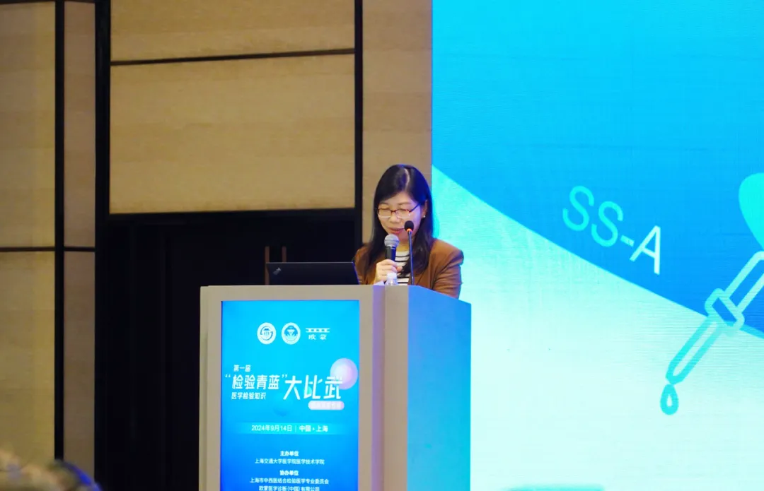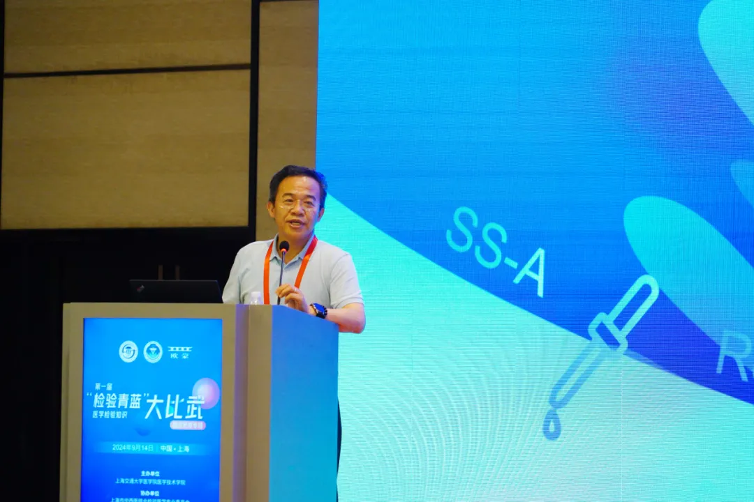 第一屆“檢驗青藍”醫學檢驗知識大比武(臨床免疫專場)在上海虹橋賓館順利舉行。本次比賽由上海交通大學醫學院醫學技術學院主辦,上海市中西醫結合檢驗醫學專業委員會、歐蒙醫學診斷(中國)有限公司協辦,旨在以知識競賽的方式,激起各位檢驗學子的學習興趣,并不斷鞏固大家的專業知識。來自上海交通大學醫學院醫學技術學院醫學檢驗技術系的倪培華教授為本次比賽致辭。