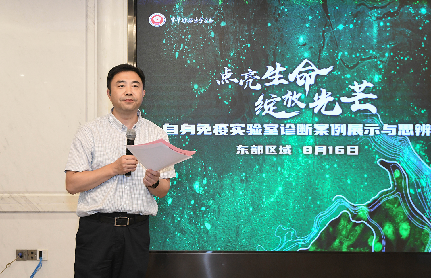 中華檢驗醫(yī)學(xué)雜志編輯部唐棟編輯代表主辦方致歡迎詞,向關(guān)注和支持案例思辨與展示活動的業(yè)界同仁表達了誠摯的感謝,特別感謝東部區(qū)域主席沈瀚教授以及各位講課專家、指導(dǎo)專家對活動的大力支持。唐棟編輯表示,此次活動通過案例思辨與深入的分析探討,展現(xiàn)專業(yè)智慧,激發(fā)創(chuàng)新思維,促進檢驗與臨床深度對話與融合,凝練并傳播優(yōu)秀實踐經(jīng)驗,共同探索提升自身免疫性疾病診療水平的新路徑,最終惠及廣大患者。