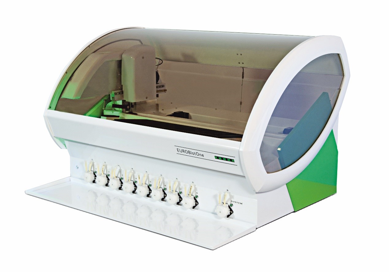 EUROBlotOne是一款緊湊型桌面設備,提供免疫印跡檢測所有流程的全自動操作,實現從樣本識別、樣本稀釋、全自動加樣、所有孵育及清洗過程,到自動成像、圖像分析與處理的全自動操作,最終的檢測結果分析由EUROLineScan印跡法判讀軟件完成,檢測結果可由EUROLineScan直接定制圖文報告,也可直接連接LIS或EUROLabOffice進行信息化管理。設備大幅度提高免疫印跡檢測的工作效率,實現全部操作的標準化。