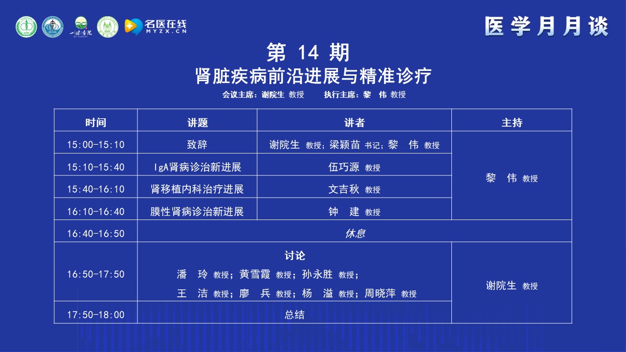 謝教授代表北京中西醫結合學會腎臟病專業委員會、北京中西醫結合腎臟疑難病會診中心以及一味書院對各位專家、各位同仁及各位朋友參加第14期“醫學月月談”的學術交流活動表示熱烈的歡迎和衷心的感謝。